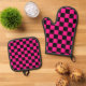 Chequered squares hot pink black geometric retro Oven Mitt & Pot Holder Set.