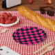 Party Supplies Tableware Paper Plates Chequered squares hot pink black geometric retro pattern gift for her. Cool retro chequered geometric square pattern. Vintage tile black and hot pink modern chequered.