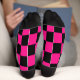 Chequered squares hot pink black geometric retro socks