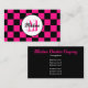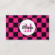 Chequered squares hot pink black and white retro Monogram Business Card. Personalise Business Cards with your custom initial and name and company information. Cool retro chequered geometric square pattern black and hot pink.