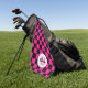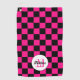 Chequered squares hot pink black retro Monogram Golf Towel. Personalise Golf Accessories with your custom initial and name. Cool retro black and pink chequered geometric square pattern designed gift for golf players.
