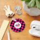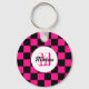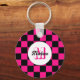 Chequered squares hot pink black retro Monogram keychain. Accessories gift for her. Cool retro chequered geometric square pattern. Vintage tile black pink modern chequered. Personalise with your custom initial and name.