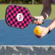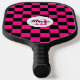 Chequered squares hot pink black retro Monogram Pickleball Paddle. Personalise with your custom initial and name.