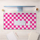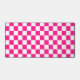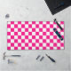 Chequered squares hot pink white geometric retro Desk Mat. Unique cool desk mat for office, room, work, workshop, gaming room.. Chequered squares hot pink white geometric retro pattern gift for her. Cool retro chequered geometric square pattern. Vintage tile white and hot pink modern chequered.