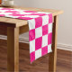 Girly Dining Table Runners home decor. Chequered squares hot pink white geometric retro pattern gift for her. Cool retro chequered geometric square pattern. Vintage tile white and hot pink modern chequered.