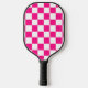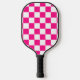 Chequered squares hot pink white geometric retro pattern Pickleball Paddle. Sports Equipment gift for her. Cool retro chequered geometric square pattern. Vintage tile white and hot pink modern chequered.