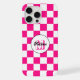 Chequered squares hot pink white retro Monogram iPhone Case. Personalise with your custom initial and name.