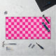 Chequered squares light hot pink geometric retro Desk Mat. Unique cool desk mat for office, room, work, workshop, gaming room.. Chequered squares hot pink geometric retro pattern gift for her. Cool retro chequered geometric square pattern. Vintage tile hot pink modern chequered.