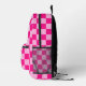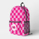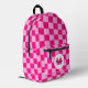 Chequered squares hot pink light pink geometry Monogram Printed Backpack. Cool fashion accessory bag for her. Cool retro chequered geometric square pattern. Vintage tile hot pink modern chequered. Create a unique and personalised backpack with a custom touch! Modern monogram with your initial and your name for that extra personal flair.