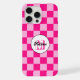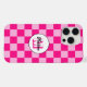 Chequered squares hot pink retro Monogram iPhone Case. Personalise with your custom initial and name.
