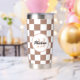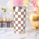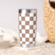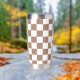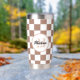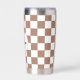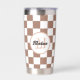 Chequered squares mocha brown white retro Monogram Insulated Tumbler