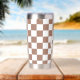 Chequered squares mocha brown white retro Monogram Insulated Tumbler. Chequered geometric retro pattern Water Bottle. Practical gift for active people. Cool retro chequered geometric square pattern. Vintage tile modern chequered.