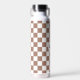 Chequered squares mocha brown white retro Monogram Insulated Water Bottle. Chequered geometric retro pattern Water Bottle. Practical gift for active person. Cool retro chequered geometric square pattern. Vintage tile modern chequered. Personalise Monogram with your custom initial and name.