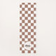 Chequered squares mocha brown white retro Monogram Yoga Mat. Personalise with your custom initial and name.