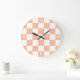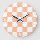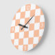 Chequered squares peach and white geometric retro large clock