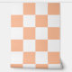 Chequered squares peach white geometric retro pattern Wallpaper. Wall Art Décor with Cool retro chequered geometric square pattern. Vintage tile peach and white modern chequered.