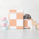 Chequered squares peach orange white geometric retro pattern. Cool retro chequered geometric square pattern. Vintage tile white and peach light orange modern chequered.