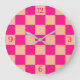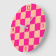 Chequered squares hot pink peach geometric retro pattern Home Decor Wall Clocks gift for her. Cool retro chequered geometric square pattern. Vintage tile peach and hot pink modern chequered.