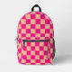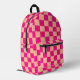 Chequered squares peach hot pink geometric retro Printed Backpack. Cool fashion accessory bag for her. Cool retro chequered geometric square pattern. Vintage tile peach and hot pink modern chequered. Create a unique and personalised backpack with a custom touch!