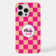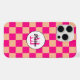 Chequered squares peach hot pink retro Monogram iPhone Case. Personalise with your custom initial and name.