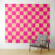 Chequered squares peach hot pink retro pattern Wall Tapestry. Art Décor gift for her home. Cool retro chequered geometric square pattern. Vintage tile light orange and hot pink modern chequered.