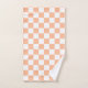 Chequered squares peach orange white geometric retro pattern. Cool retro chequered geometric square pattern. Vintage tile white and peach light orange modern chequered.
