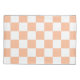Chequered squares peach orange white geometric retro pattern. Cool retro chequered geometric square pattern. Vintage tile white and peach light orange modern chequered.