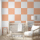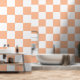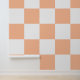Chequered squares peach white geometric retro pattern Wallpaper. Wall Art Décor with Cool retro chequered geometric square pattern. Vintage tile peach and white modern chequered.