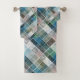 chequered, tartan, plaid, classic, blue, white bath towel set