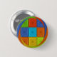 The central portion features a grid or chequerboard pattern composed of squares in red, golden yellow, green, and cyan.
