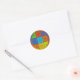 The area surrounding the chequered section is filled with flowing shapes in the same vibrant colours (red, golden yellow, green, and cyan).