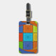 The central portion features a grid or chequerboard pattern composed of squares in red, golden yellow, green, and cyan.