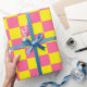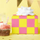 Abstract digital art of yellow and pink squares in a chequered formation.