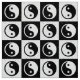 Chequered black and white positive and negative Zen yin yang symbols themed Surface Pattern Design Fabrics