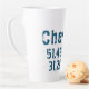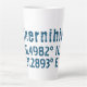 Latte mug design features latitude and longitude coordinates for Chernihiv, Ukraine in distressed dark blue font . Chernihiv is located in Northern Ukraine and has been nicknamed "The City of Legends".