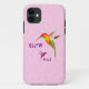 Hummer time iPhone Case - featuring two sweet enigmatic hummingbirds. The Cherokee words for hummingbird and baby (walela and usdi) are shown in Cherokee characters on a sweet pink swirl background.
