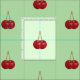 Paired cherries on a light green background. It would make nice kitchen curtains.