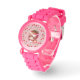 Fun cherries pattern watch. Features a stylish cherries pattern, red cherries on a pink background.