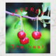 Cherries on the tree after the rain with a bee and wiht your name and text