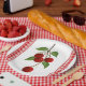 These Cherries Paper Plates feature an acrylic painting print of Cherries with a bit of red and white gingham on the sides.