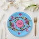 Cherries Pink Fruit on Turquoise with Initials Paper Plate