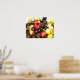 Colourful poster featuring a photograph of dark red sweet cherries and yellow blushing bing cherries. includes an optional text area for personalisation, if desired (can delete if unwanted). Several sizes available.