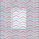 This fabric is decorated with a chevron pattern outlined in white and coloured in light peach, cherry red and turquoise blue. The lines are offset to make each line pop in an optical illusion. There is a cement texture over top of this pattern, giving this chevron a vintage, faded look.