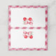 Add a sweet and charming detail to your baby shower tablescape with our cherry-themed folded place card. Featuring watercolor cherries tied with a pink bow and framed by a gingham border, this versatile card is perfect for guest seating, food labels, or dessert table signage. Fully customisable to match your event colours and personalised with names or text of your choice. Coordinates beautifully with the Cherry Baby Shower collection.