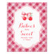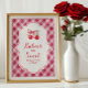 Sweeten up your baby shower with this cherry-themed sign! Designed with watercolor cherries tied in a pink bow and a cheerful gingham background, it reads “Babies Are Sweet – Please Take a Treat.” Perfect for decorating your dessert, candy, or snack table, this sign ties your cherry baby shower theme together beautifully.
