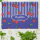 Express your cherry obsession with this sweet red cherry graphic pattern and modern nautical blue and white striped kitchen towel. Personalise with a custom name or message. If you don't like the white on blue stripes, you can easily change the colours to fit your style. Go retro. Go country. Go cottage core. This darling towel is the perfect gift for the chef, cook or baker in your life. A truly unique way to celebrate your cherry mood! Combine with cute apron or potholders from the Cherry Berries Red and Blue Collection in my store. Mon cheri. Original cherries illustration by reedstudio.