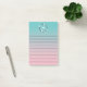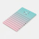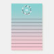 Lined post-it notepad with a monogram inside a cherry blossom wreath atop pink and turquoise ombre.