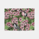 Cherry blossom and chickadees on green fleece blanket