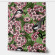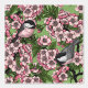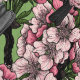 Hand drawn vector pattern with branches of cherry blossom and chickadee birds