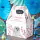 A cute baby owl with pretty pink cherry blossoms. Customise this birthday favour box for your daughter or son.